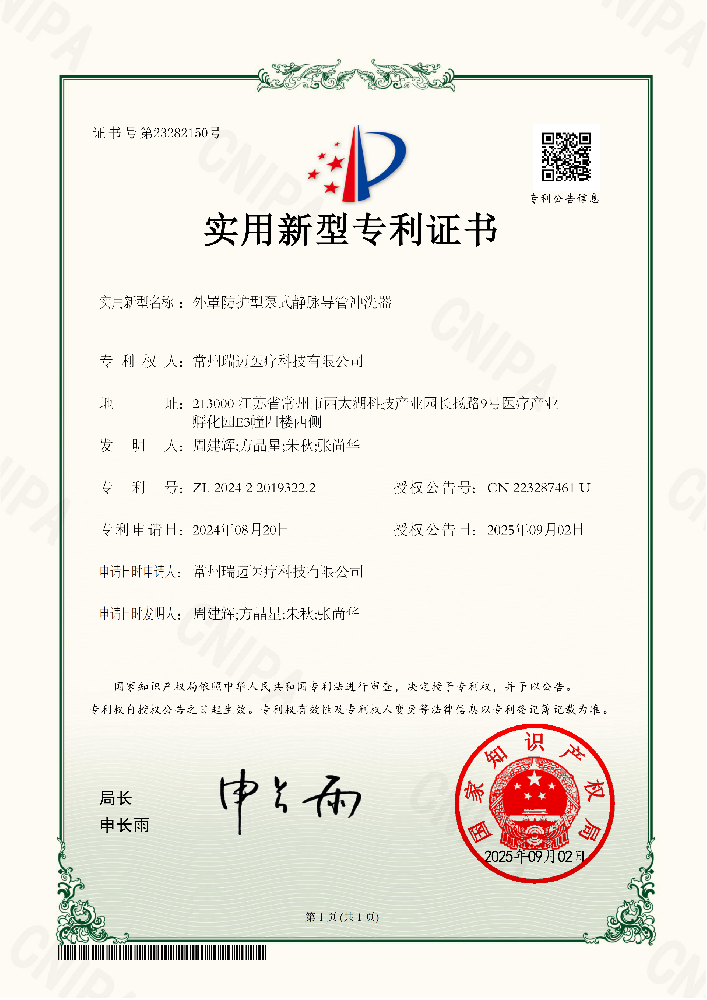 常州瑞迈医疗科技有限公司为专业从事二类、三类医疗器械研发、生产、经营一次性使用各类医用高分子耗材的企业,位于常州市武进区西太湖医疗产业园,本着科学规范的管理,以顾客为中心的服务理念,一直受到用户的一致好评。目前公司拥有GMP标准万级及十万级净化车间,占地面积2200余平方米,拥有多台先进特种精密导管生产线设备及特种导管深度后加工生产设备,可针对不同的产品要求进行特定加工生产。